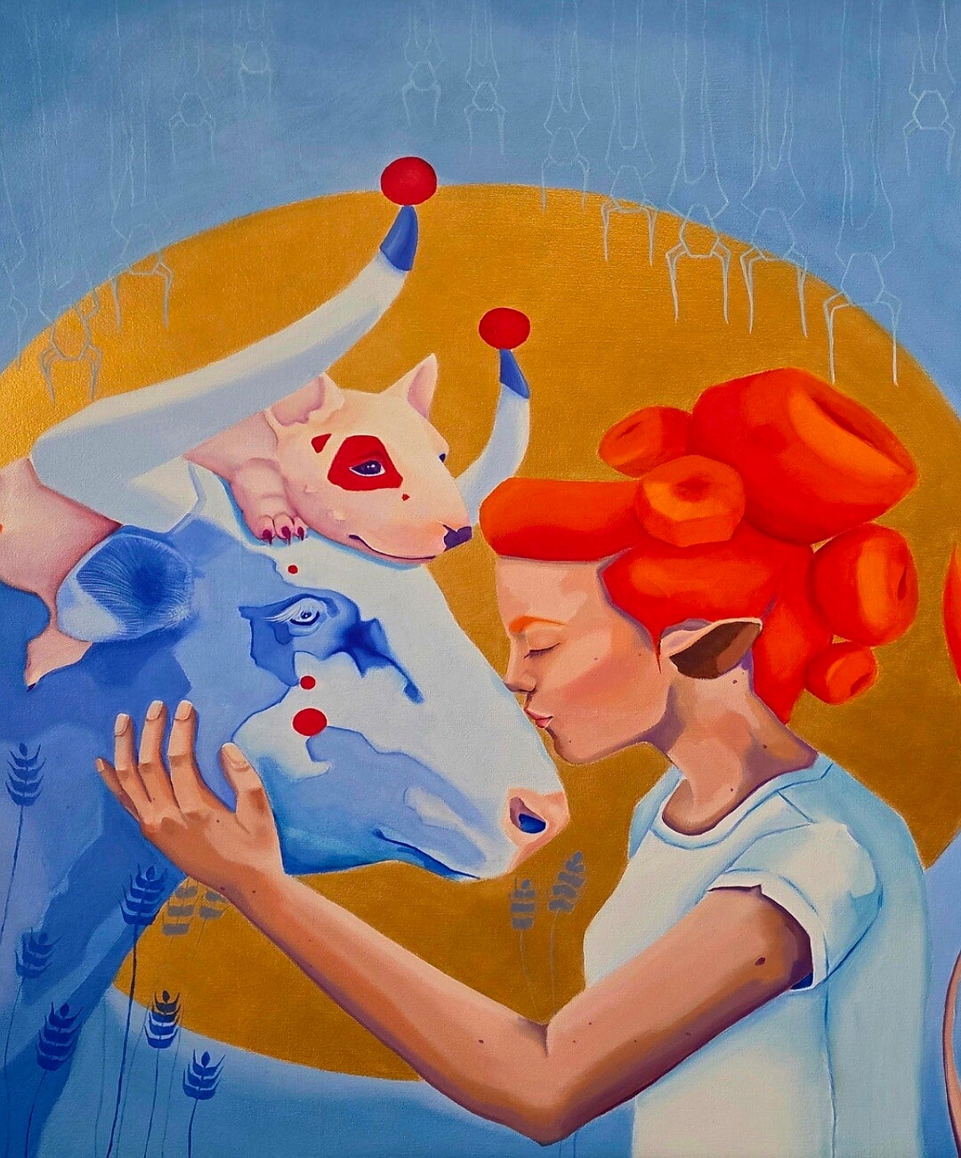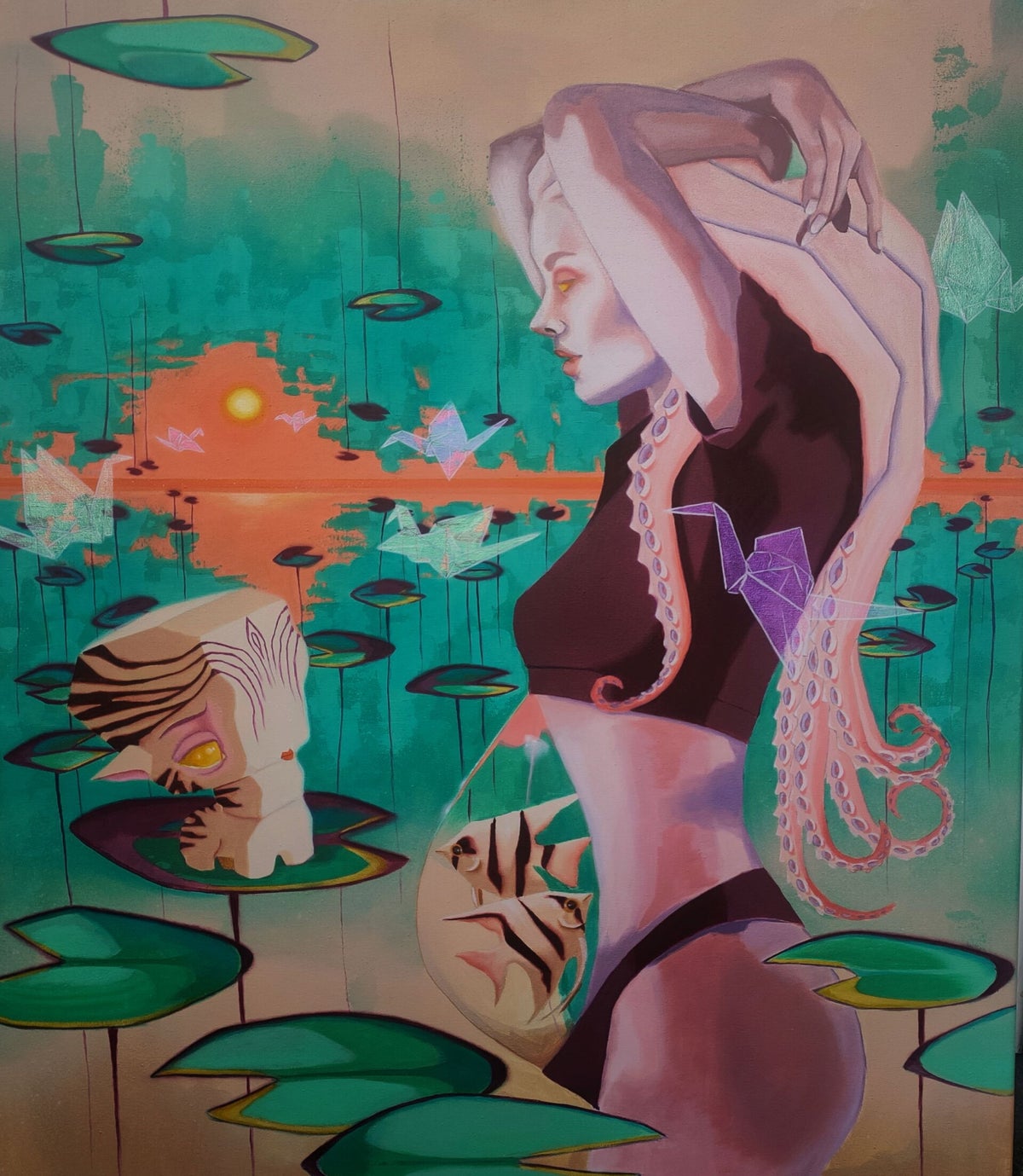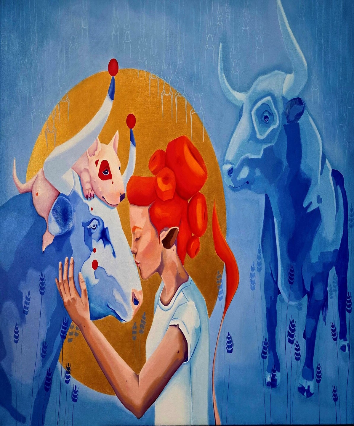 Waar anderen voorbijrazen, blijft zij staan. Ze bewaakt de schoonheid van het moment en de rijkdom van eenvoud. Haar kracht is tastbaar voelbaar in elke lijn, elke schaduw, elke penseelstreek van dit werk. Het is de kracht van overgave, van trouw aan zichzelf, van innerlijke zekerheid die niet bewogen wordt door ruis van buitenaf.